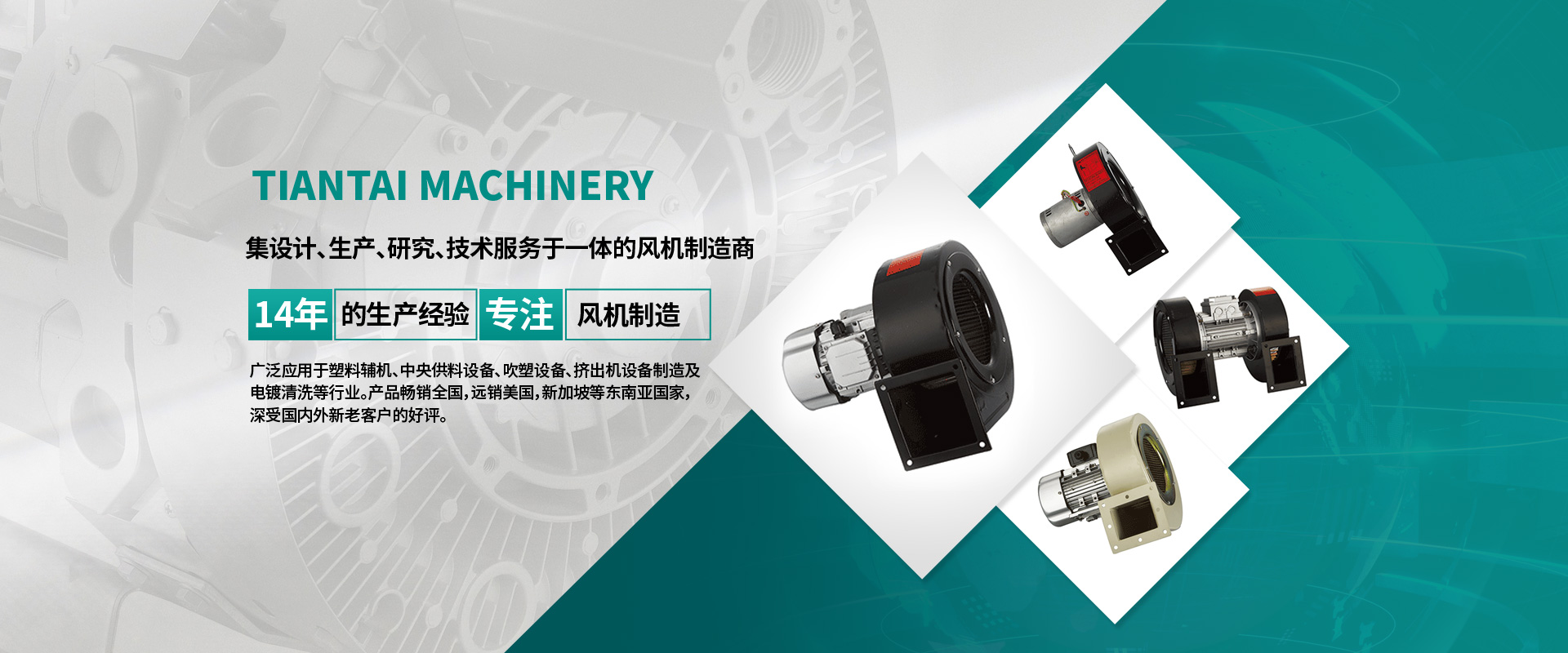 自成立以來,公司不斷引進新設(shè)備,新技術(shù),擁有一批行業(yè)資深的工程師投入產(chǎn)品的開發(fā)與研究,對產(chǎn)品質(zhì)量進行嚴格的監(jiān)控,天泰機械有限公司自主開發(fā)生產(chǎn)的“TIANZELU”牌風機廣泛應(yīng)用于塑料輔機、中央供料設(shè)備、吹塑設(shè)備、擠出機設(shè)備制造及電鍍清洗等行業(yè)。產(chǎn)品銷往全國,遠銷美國,新加坡等東南亞國家,深受國內(nèi)外新老客戶的好評。